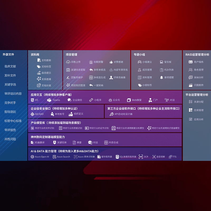 医疗器械产品上市前,,,要熟悉严格与繁复评审标准,,,整理分析监管机构指导文件中的海量信息。。。。企业急需一个智能化解决方案,,提升知识管理效率,,提高评审通过率,,,,以提升其市场竞争力。。