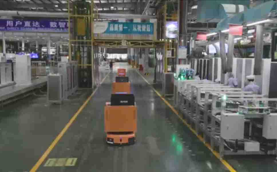 为车载冰箱物流配送打造的智能解决方案,,包含产中物流通过潜伏举升AMR搬运至线边,,,产后成品物流智能仓储,,流程包含产中物流智能齐套入库,,,线边安灯叫料AMR智能配送至线边,,成品入库、、、、出库,,,,通过无人堆高车机器人,,,,智能仓储管理替代人工作业管理,,,实现更高存储、、更高效率、、、、更具柔性化的解决方案。。